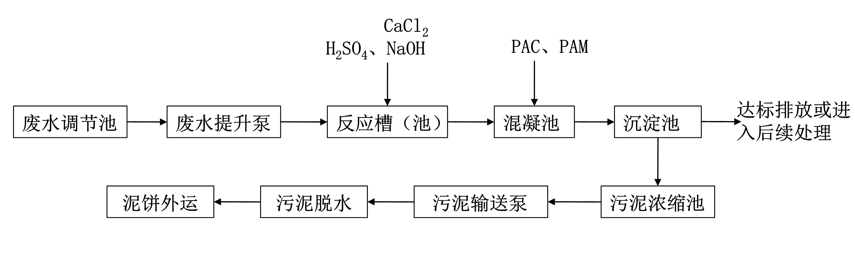 含氟廢水的治理技術(shù)主要為化學(xué)沉淀法,即投加化學(xué)藥品形成氟化物沉淀或氟化物被吸附于所形成的沉淀物中而共沉淀,然后分離固體沉淀物即可除去氟化物。在半導(dǎo)體行業(yè)中,通常使用一級或二級沉淀,投加Ca(OH)2或Ca(OH)2和CaCl2的混合物產(chǎn)生難溶于水的CaF2沉淀。石灰沉淀的化學(xué)反應(yīng)為: