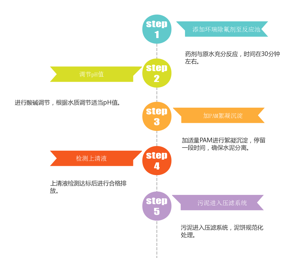 山東環瑞生態的深度除氟劑作為除氟的專業藥劑,其使用流程如下: