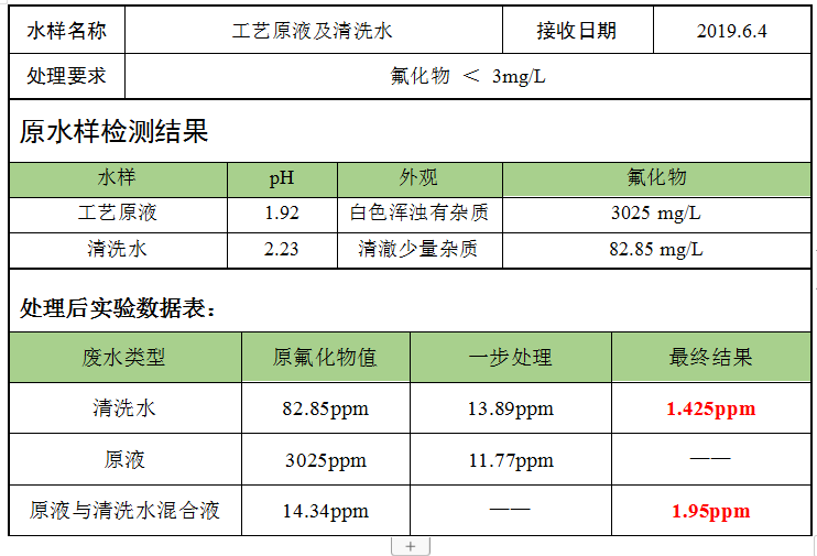 除氟劑廠家,除氟劑使用之案例介紹,除氟劑廠家關(guān)于氟化物的降低可提供高效除氟劑的使用、調(diào)試、培訓(xùn)等一系列整體方案,為企業(yè)解決真正的污染難題,使污水達(dá)標(biāo)排放