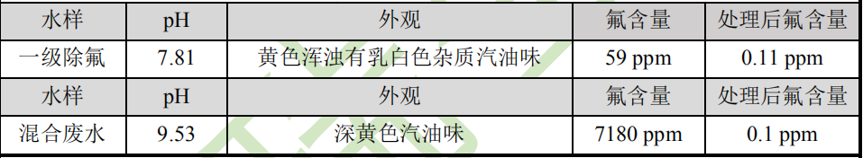 該廠的污水處理系統已經用了很多年,給其提供了高效除氟劑GMS-F4之后進行實驗,按貴公司當前的使用工藝和藥劑處理,高效除氟劑GMS-F4變量添加,其實驗結果如下:
